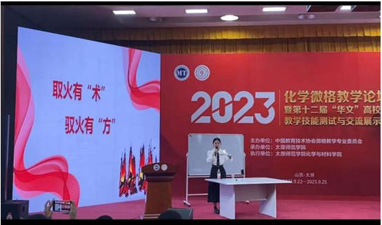 2023年9月25日,第十二届“华文”高校化学师范生教学技能测试与交流展示活动在太原师范学院落下帷幕。我校化学化工学院共六名学生参加比赛,在专业教师团队的精心指导下,反复打磨、精心备赛,凭借扎实的专业知识、焖熟的授课技巧、精彩的现场表现,获得佳绩。学生在高校化学师范生教学技能测试中,荣获一等奖1项,二等奖3项,三等奖2项,化学学科教学设计能力测试中,荣获二等奖1项,三等奖5项。此外,付甜同学被推荐为特色案例在闭幕式上进行教学技能现场展示,向大家展示了我校师范生的风采。