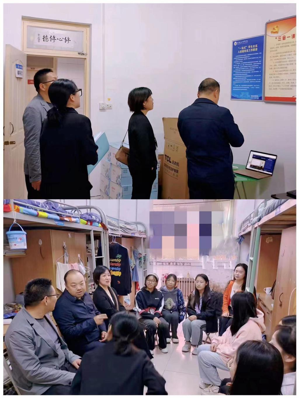 11月3日,校友工作处处长刘景世、我院党委书记兰佳、党委副书记王宏江以及辅导员王媛深入11号楼学生公寓,实地走访我院“一站式”学生社区建设。
