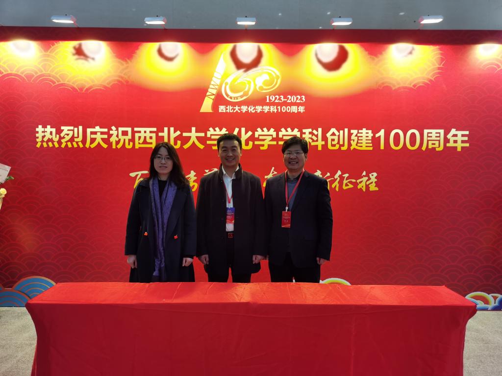 11月19日,西北大学化学学科创建100周年庆典大会在长安校区举行。化学化工学院院长胡登卫应邀参加大会,并代表学院赠送了何尊。西北大学化学与材料学院副院长史素青,西北大学合成与天然功能分子化学教育部重点实验室副主任、国家化学实验教学示范中心主任崔斌教授代表对方接收了捐赠。