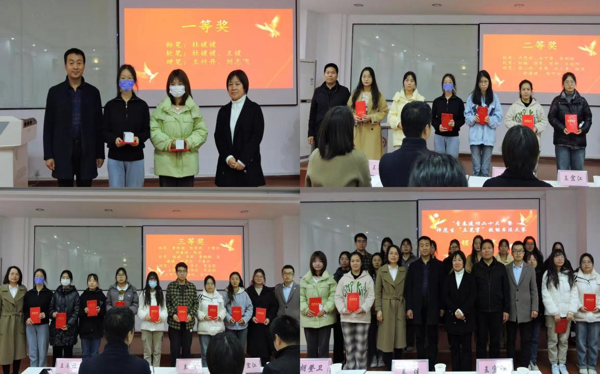 11月29日,学院举行了“三笔字”书写大赛颁奖仪式。学院团总支书记许小莉宣读了大赛获奖名单;兰佳、胡登卫为一等奖获得者颁发奖品及证书、王宏江为二等奖获得者颁发奖品及证书、副院长王冬梅、齐春轩老师为三等奖获得者颁发奖品及证书。王冬梅对本次比赛进行了点评,她肯定了同学们的优秀表现,对获奖同学表示了祝贺;强调开展“三笔字”书写技能的重要意义,表示学院会将此项活动长期坚持,助力同学们职业技能和综合素质的不断提升。