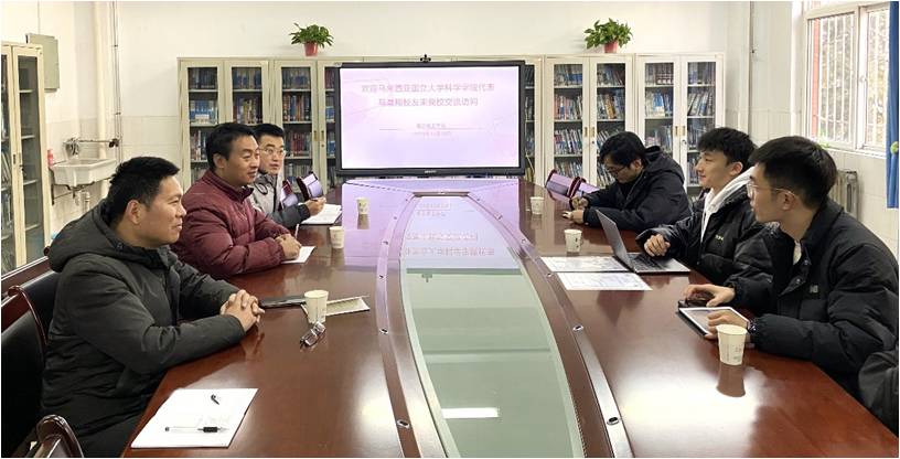 12月26日,马来西亚国立大学科学技术学院院长伊沙克·艾哈迈德委派马晨翔一行访我院。院长胡登卫、党委副书记王宏江、副院长冯海涛与马晨翔一行进行了会晤,并就双方联合培养办学、国际交流合作等议题进行了商谈。会议由胡登卫主持。