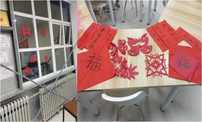 活动现场气氛热烈,大家围坐一团,有的同学倾情挥墨,写下一幅幅风格多样、祝福满满的福字;有的同学拿起剪刀,对照教程,剪刻着自己喜欢的花样图案,大家都踊跃展示着自己的剪纸作品,充分享受剪窗花活动的乐趣,欢声笑语不断;有的同学两两一组,进行你猜我画、诗词接龙,增强了小组默契。最后大家品尝了饺子,分享着温暖的祝福,拉近了彼此之间的距离,在浓厚的文化氛围中感受着节日的欢乐。