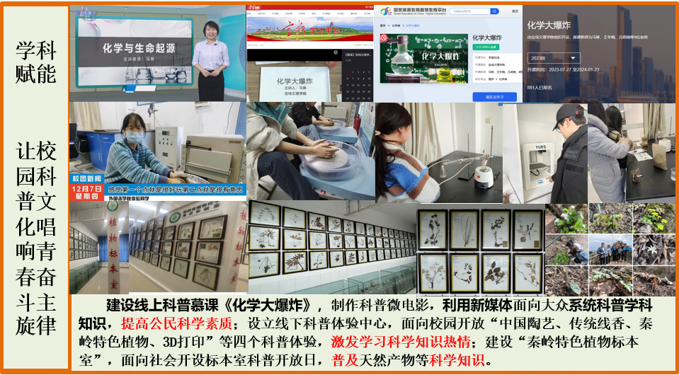 近日,中共陕西省委教育工委公布了2023年全省高校校园文化建设优秀成果评选结果,我校党委宣传部组织遴选、我院大学生创新创业教育中心主任马琳老师申报的《文化引领,学科赋能,服务社会——公海贵宾会官网jcjc5500开展“文化+”的科普志愿服务活动》获三等奖。