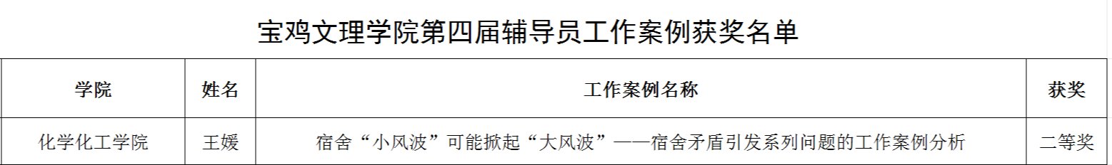 近日,我校学工部组织开展第四届辅导员工作案例评选活动,我院高度重视大赛、辅导员热情参与。经专家评审,我院辅导员王媛参评案例《宿舍“小风波”可能掀起“大风波”——宿舍矛盾引发系列问题的工作案例分析》喜获二等奖。