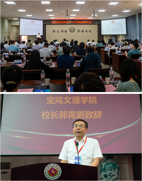 郭霄鹏在致辞中向各位专家表示诚挚欢迎,向本次会议的举办表示热烈祝贺,向各位专家学者长期以来关心支持我校发展表示衷心感谢。他简要介绍了我校办学历程、专业设置、师资队伍、教育教学、学科建设、科学研究、社会服务及近年来化学学科取得的进步和服务区域经济社会高质量发展等情况。他指出,化学是重要的基础科学之一,是人类认识和改造物质世界的主要方法和手段之一,展现出巨大的科学研究和应用潜力,对推动新质生产力发展发挥着重要作用。本次会议的召开,对于推进陕西省化学学科和化学相关产业发展、提升化学学科产教融合水平和人才培养质量将起到积极的促进作用。此次会议在我校召开,必将对我校教学科研、学科建设等工作产生积极影响。他表示,学校将紧紧抓住国家“双一流”建设的机遇,围绕“一带一路”倡议和创新驱动发展战略,深化综合改革,加快内涵发展,奋力追赶超越,为地方和国家经济社会发展做出新的更大的贡献。