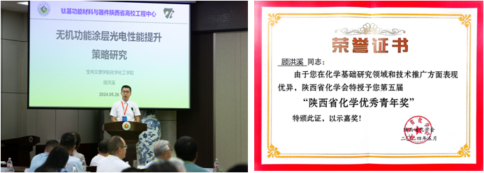 近日,由我校化学化工学院承办的陕西省化学会2024年理事会会议在我校高新校区召开。会上,我校压电新能源青年创新团队成员顾洪溪副教授被授予陕西省化学优秀青年奖,并作了题为“无机功能涂层的光电性能提升策略研究”的主题报告,广受省内相关高校、科研单位的专家学者好评。(化学化工学院 文、图 /周妮妮 审核/胡登卫)