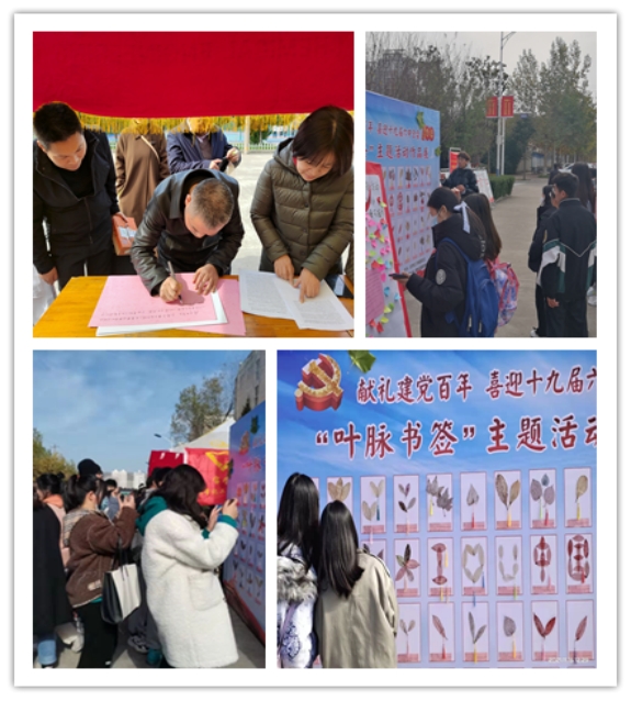此次主题活动展出的120个书签,是由我院学生在实验室制作而成的,先将树叶在氢氧化钠、过氧化氢溶液中浸泡煮沸,再进行冲刷、着色、干燥、塑封等。所用树叶面向全校学生征集,由教育学院、美术学院、文传学院等10个学院的学生提供,同学们在送来树叶的同时,还书写了献礼建党百年和喜迎十九届六中全会的祝福语。活动现场吸引了众多学子驻足观看,热情参与,同学们纷纷在留言板上留言,表达听党话感党恩跟党走的深厚情怀。