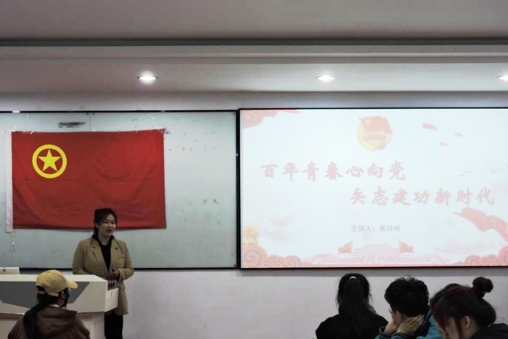 汲取榜样力量,学生党员讲团课 2019级学生党员朱玲可向学生干部们讲述了一堂生动的主题团课--《百年青春心向党,矢志建功新时代》。朱玲可以宝天英烈的英勇事迹为背景,向大家展示了革命先辈们在困苦时代追求真理、艰苦奋斗、无私奉献的伟大精神,以此引导大家向革命先辈学习,倡导同学们筑牢理想信念,增强政治素养;树立榜样形象,起模带头作用;端正学习态度,提升综合素质。