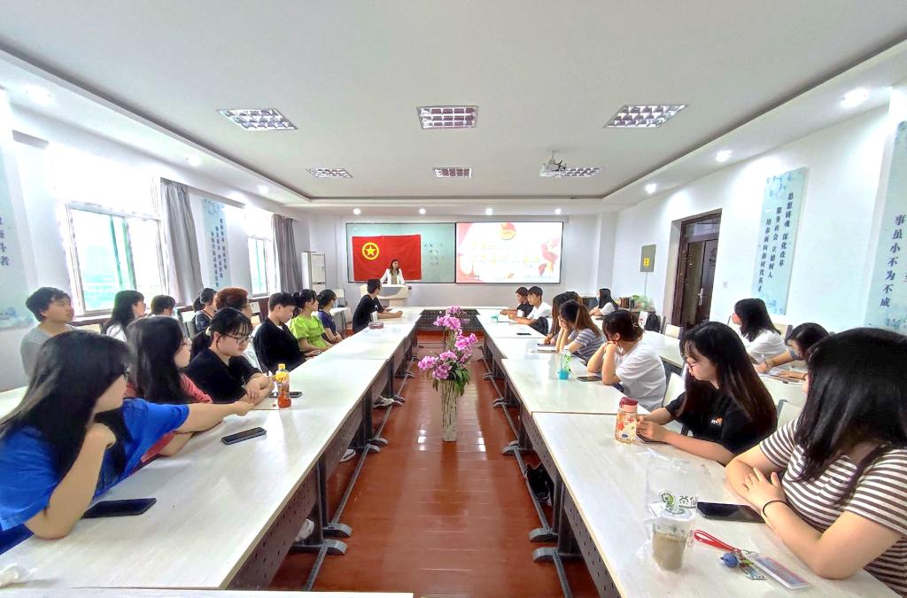 团课开始,许小莉带领大家重温了习近平总书记在庆祝共青团成立100周年大会上的重要讲话。随后,她向大家绘声绘色地讲述了革命先烈夏明翰的光荣事迹。通过讲述夏明翰的事迹,她指出,奋斗是青春的底色。我们青年虽没有生活在枪林弹雨、刀光剑影的年代,但我们依旧要在当下幸福生活中继承和发扬革命先辈艰苦奋斗、自强不息的伟大精神,在奋斗的年龄担负起青春的使命,明确未来奋斗方向,珍惜时间、努力学习、磨砺意志、提高能力,为祖国繁荣建设做出贡献。接着,朱玲可带领大家学习本期青年大学习。她表示,我们应当按时学习政治理论学习,提高政治文化素养,跟上时代前进的脚步,融入民族复兴的伟业。在政治理论学习中加快知识更新、优化知识结构、拓宽眼界和视野,从而赢得主动、赢得优势、赢得未来。