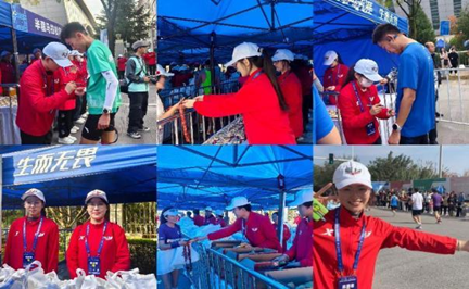 比赛当天,志愿者们于凌晨4:30出发到达执勤地点,他们身着统一的志愿者服装,精神抖擞地投入到各自的岗位上。在赛事的半程完赛区,学院的志愿者们承担着重要的责任。他们为完成半程马拉松的选手提供终点接待服务,负责祝贺每一位坚持跑到最后的选手,为其做完赛标志记录,颁发象征荣誉的完赛奖牌,递送毛巾,发放矿泉水、水果等完赛补给品,协助选手进行拉伸放松。