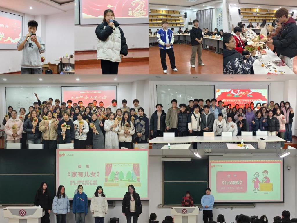 在才艺展示方面,各班级也是大放异彩,展现了同学们的多样才华。有的同学带来了深情的朗诵,用声音传递着对青春的赞美和对未来的憧憬;有的同学则用音乐诉说着自己的情感和故事;还有的同学通过自编自导自演的小品,将大学生活中的点滴趣事搬上了舞台,用幽默和创意赢得了现场观众的阵阵掌声和笑声。