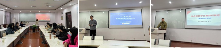 李辉首先为教师们介绍了教学创新大赛的背景和发展历程、陕西高校的参赛和获奖情况,并通过获奖案例帮助青年教师树立信心,鼓励青年教师积极参赛,历练自我;叶继坤分享了他在教学创新大赛中的经验,以及如何在教学中融入新工科教育理念,并形象生动地展示了现场教学部分,让教师们亲身体验创新课堂的构建过程,激发了教师们的创新思维;傅文从备赛环节入手,对讲授内容的选择、比赛讲稿的撰写、比赛课件的制作、打磨等各部分细节逐一进行了指导,帮助教师们掌握实用的参赛技巧。