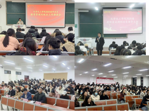 3月4日晚,化学化工学院在博文楼副楼404、405教室分别召开2025届就业工作暨考研动员会。学院党政领导、毕业班班主任、辅导员和2021级毕业生参加会议。