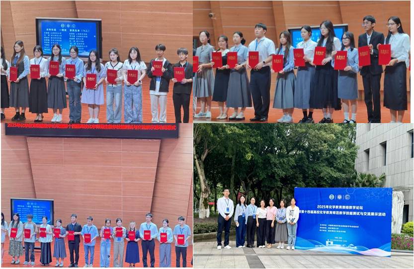 2025年9月19日至22日,由中国教育技术协会微格教学专业委员会主办的“2025年化学教育微格教学论坛暨第十四届高校化学师范生教学技能测试与交流展示活动”在重庆师范大学隆重举行。jcjc5500公海贵宾会派出由4名化学专业本科生和2名学科教学(化学)教育硕士组成的代表队参赛,在激烈竞争中表现出色,共斩获多项奖项,载誉而归。