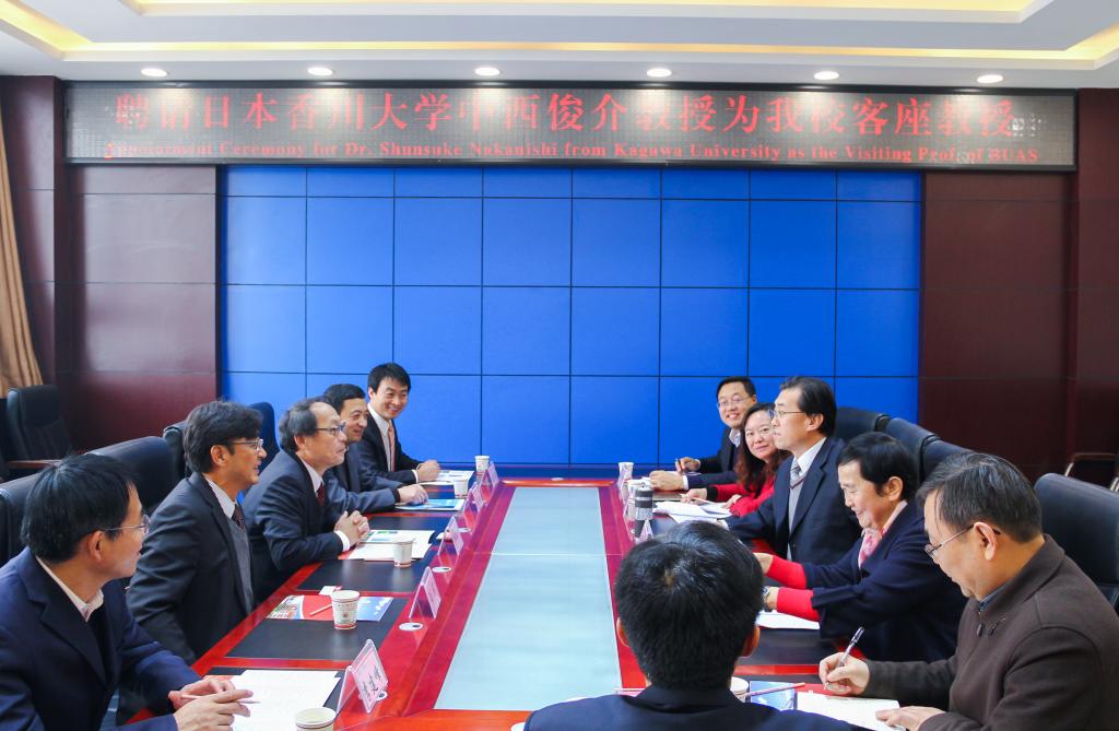 12月19日,日本香川大学学工部教授、理学博士、学部长、教务委员,日本应用光学专家中西俊介与日本著名学者、博士生导师冯旗教授来我校交流访问。校党委书记白黎、校长司晓宏、副校长赵荣侠分别会见了中西俊介和冯旗一行。