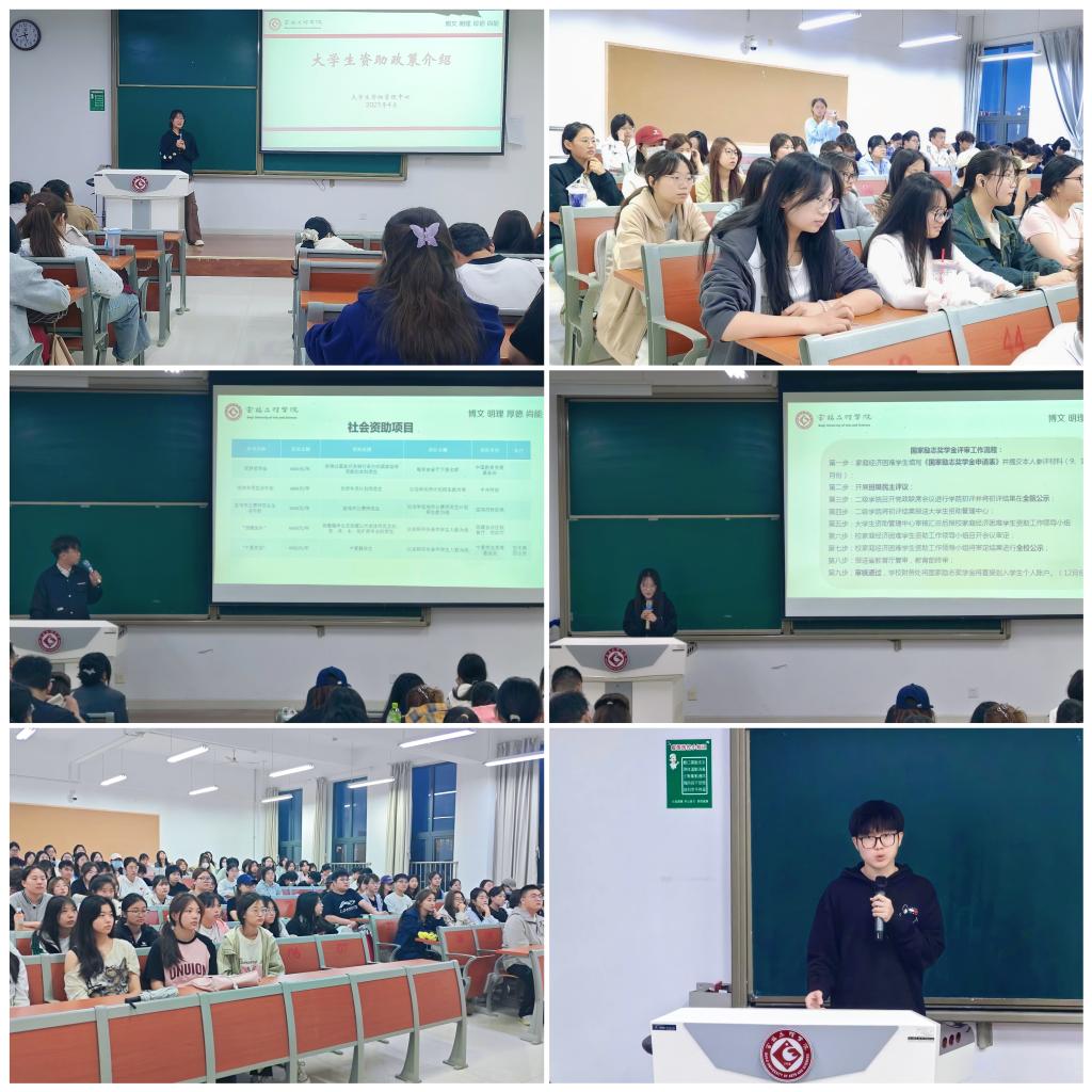 宣讲会上主持人张艳艳系统介绍了国家"奖、助、贷、补、减、勤"全方位资助体系。马丽娜同学重点讲解了国家奖学金和国家励志奖学金的评审细则,强调"国家奖学金注重学业成绩与综合素质双优,国家励志奖学金则侧重品学兼优的家庭经济困难学生"的评审标准,并提醒同学们注意"9月份启动申请,需提前准备相关证明材料"。