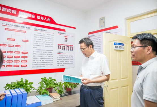 郭霄鹏察看了社区管理、辅导员值班值守、党建引领、党团活动开展、社区文化建设、空调安装和安全稳定等工作,询问了学生对公寓文化走廊和读书角场地作用发挥情况的意见,肯定了社区党支部开展系列帮扶活动的有益尝试和落实功能区域安全责任的有力举措。他指出,要继续加强学生社区建设,切实发挥好学生社区的前沿阵地作用,推动学生社区育人提质增效,不断提升学生的获得感、幸福感、安全感。