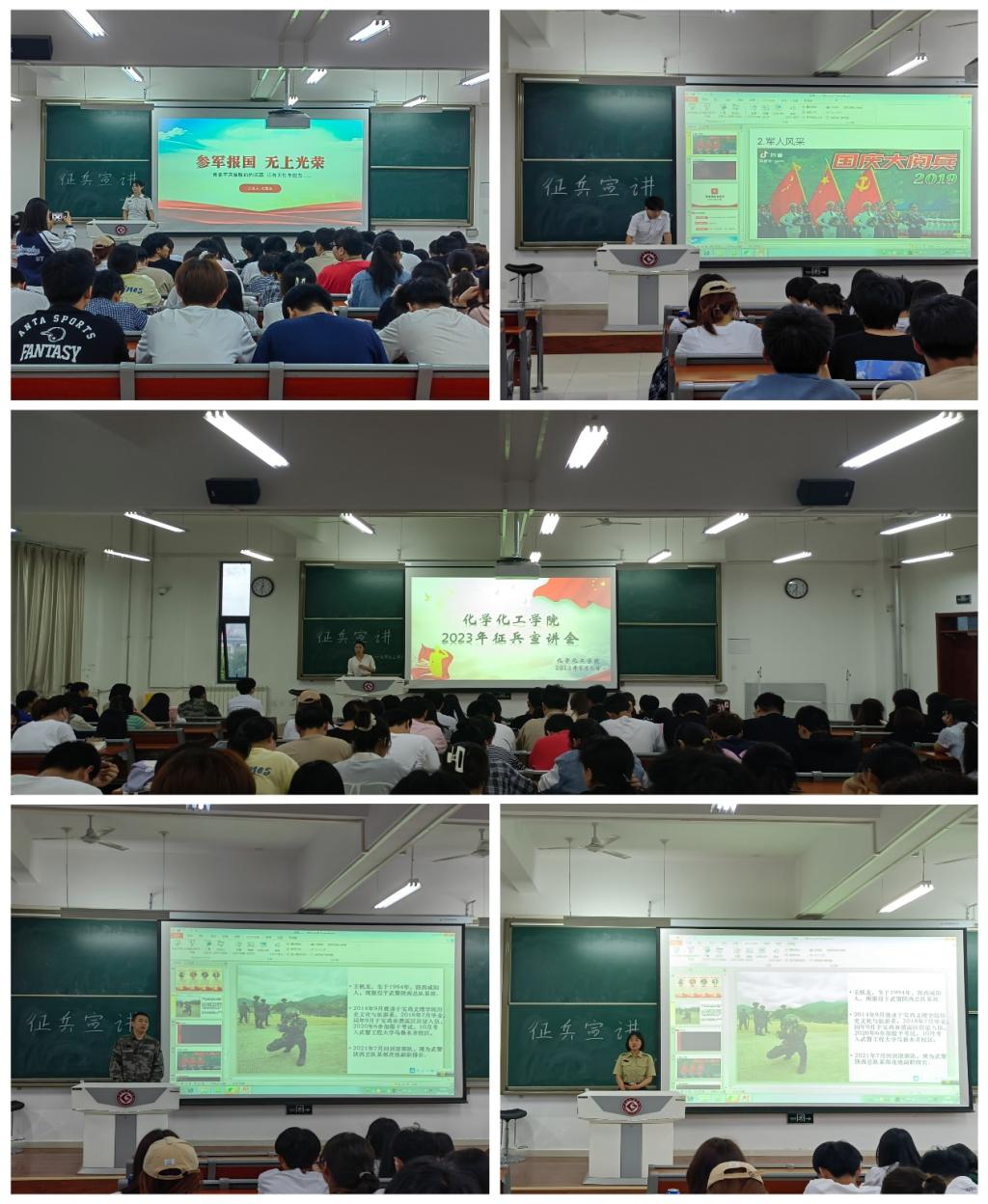 热血报国当少年,岁月无悔正青春。此次征兵宣讲活动的开展,充分调动了我院学子应征入伍的积极性,强化了我院学子的责任感和参军报国意识,为进一步推进学院征兵工作奠定了坚实的基础。化学化工学院团总支 供稿(文、图/胡博文 审核/王宏江 钟玉彬)