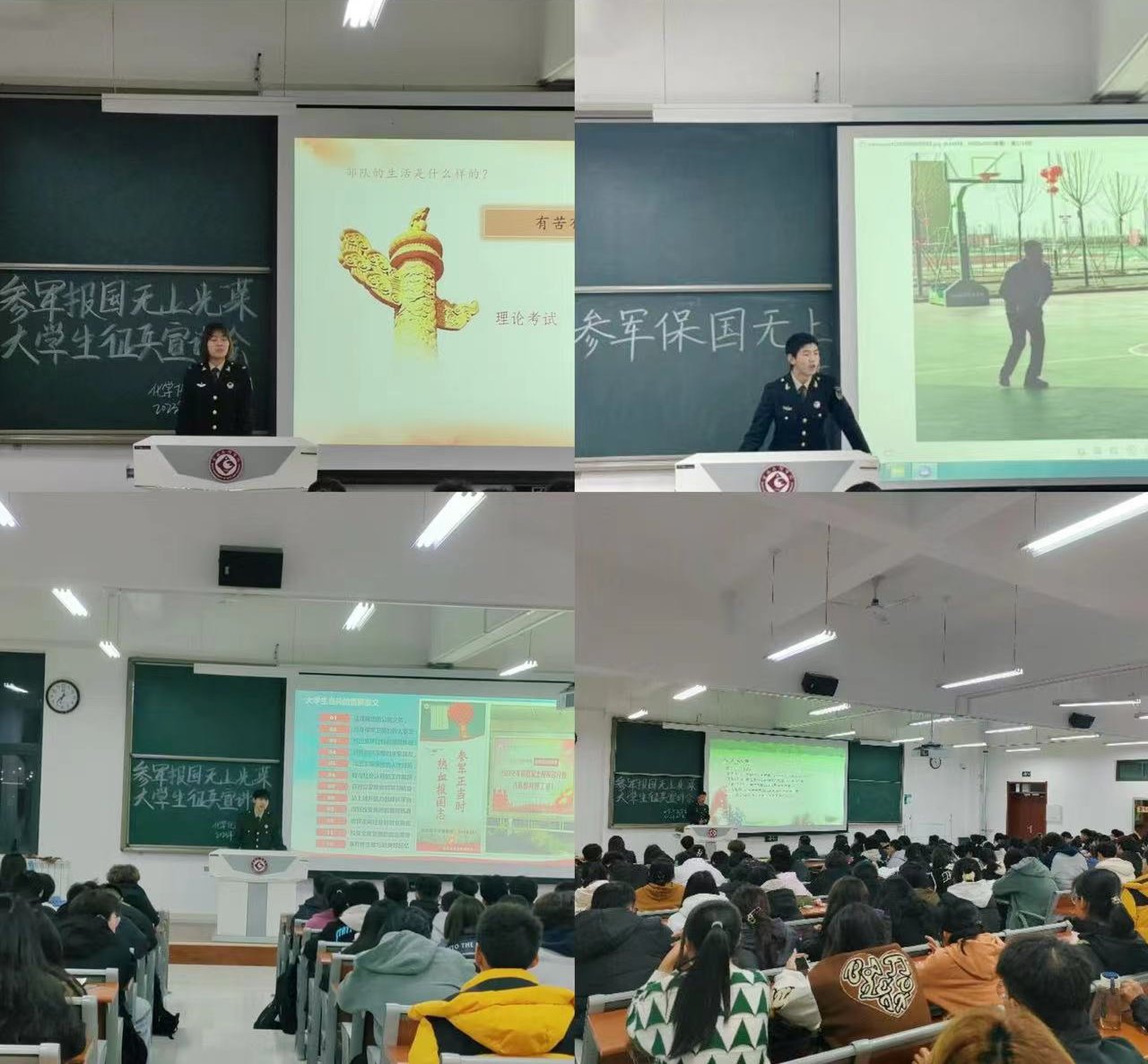为积极响应国家号召,贯彻落实征兵宣传政策,进一步加强大学生征兵入伍宣传工作,11月14日晚,我院于博文楼副楼405教室开展征兵宣讲会,学校武装部大学生征兵宣讲团8位成员、辅导员钟玉彬、2023级全体学生参加本次宣讲活动。