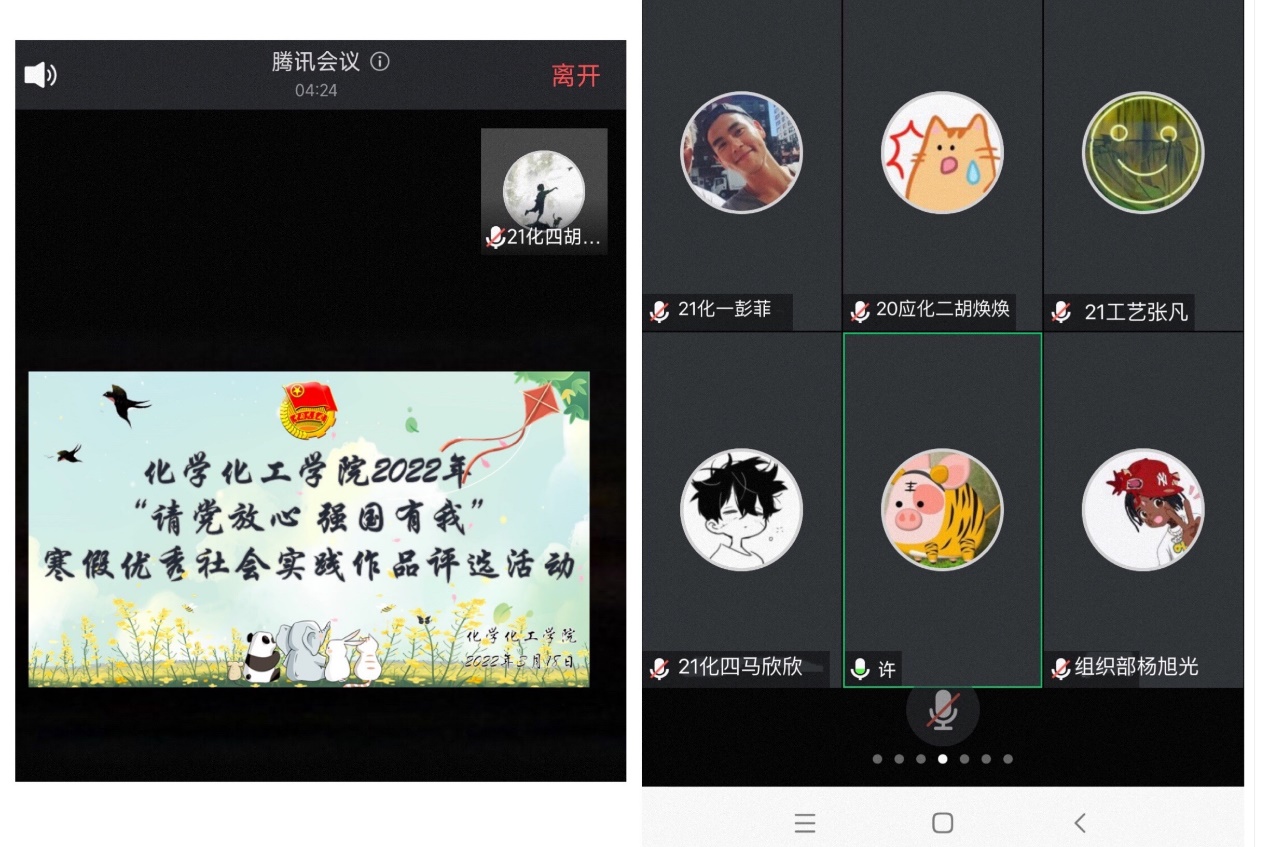 3月18日晚19:00,化学化工学院团总支通过腾讯会议,开展寒假社会实践优秀作品评选活动。团总支书记许小莉、团总支学生会主席团、组织部以及36名参赛者参加了此次评选活动。本次活动由许小莉主持。