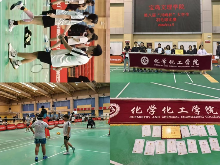 为增强文理学子的身体素质,培养团队协作精神。我校于2024年11月18日至11月25日在高新校区体育馆成功举办“川崎杯”大学生羽毛球比赛,化学化工学院作为参赛队伍之一,经过精心组织和积极备战,在比赛中充分展现了团队实力和竞技风采,荣获男子团体第七名。