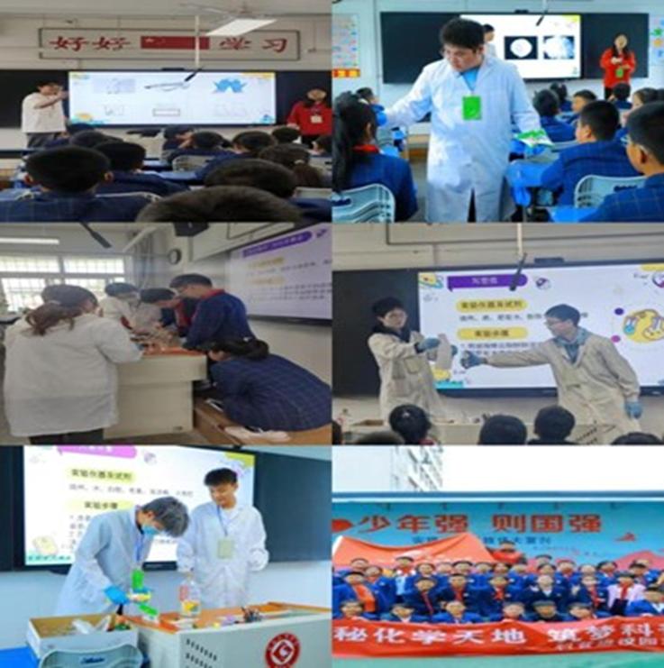 通过实际操作和互动演示,孩子们表现出极大的热情和参与度,他们更加深入地了解了科学现象和原理。此外志愿者还以“衣食住行中的化学”为切入点进行科普讲座,结合衣物染色原理、食品防腐技术、建筑材料合成等实例,引导孩子们发现“化学无处不在”。此次活动不仅提高了孩子们的科学素养和科学意识,还增强了志愿者团队的凝聚力和合作精神。