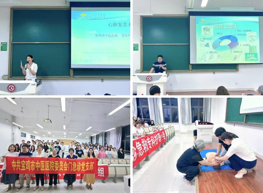 5月25日晚,我院“一站式”学生社区功能型党支部联合宝鸡市中医医院门急诊党支部,在博文楼204教室开展“关爱健康 珍爱生命” 医疗急救知识专题培训。宝鸡市中医医院急诊科副主任窦元元副主任医师、房延兵副主任医师、董永奇副主任医师及急诊科护士长白文静应邀开展培训,学院党委书记兰佳、辅导员王媛、学生代表共100余人参与活动。