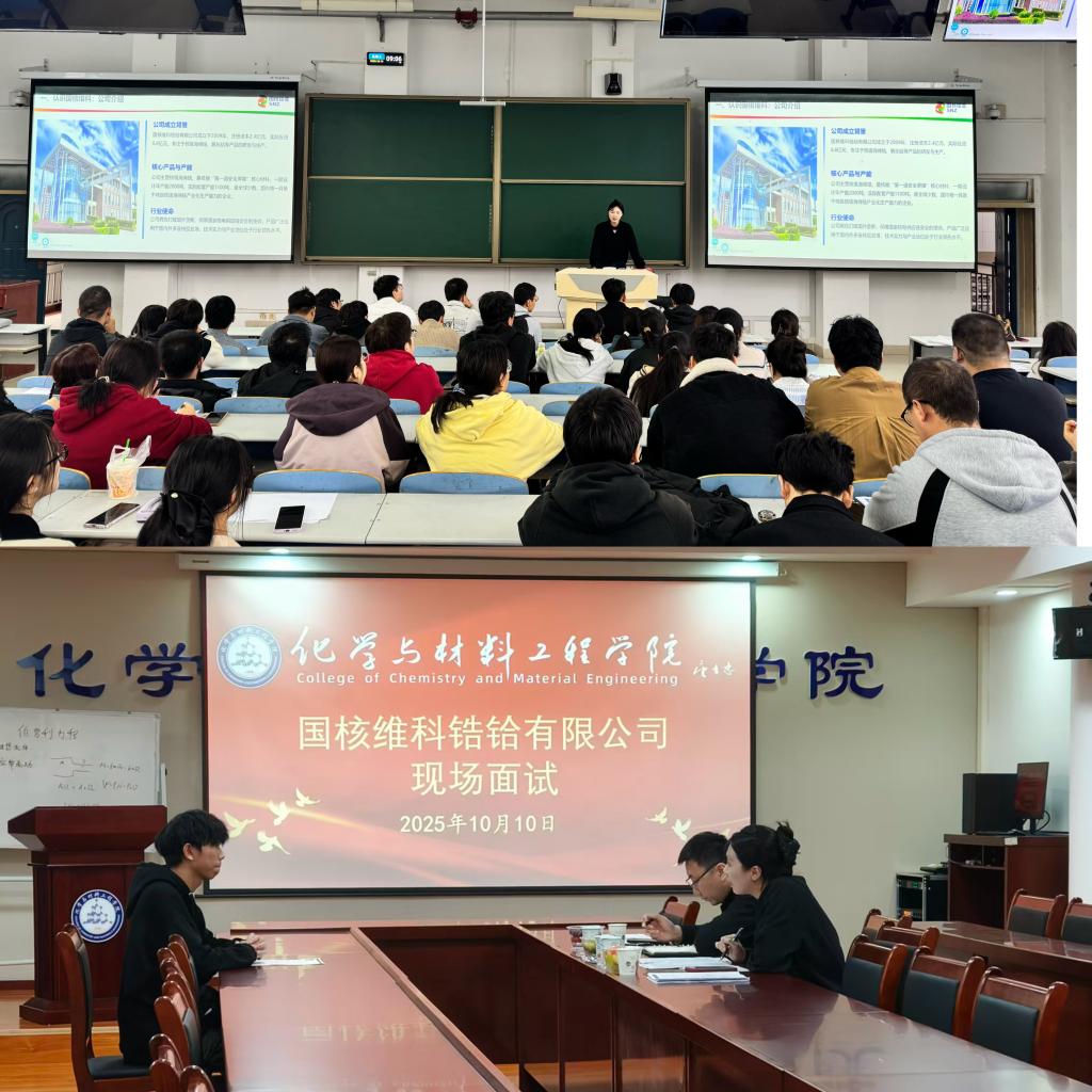 10月10日,jcjc5500公海贵宾会邀请国核维科锆铪有限公司在思贤楼222教室举办专场招聘会,学院2026届毕业生近90名参加,学院党委副书记张力主持会议。